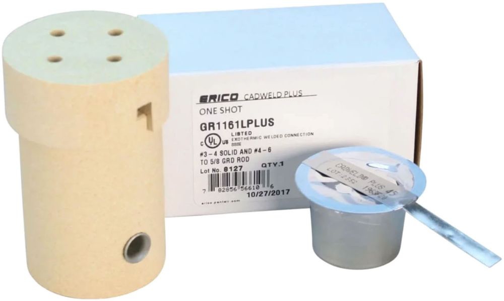 nVent ERICO Cadweld One Shot, Cable to Ground Rod, Plus, GR (ONE SHOT), 3/4" dia, #4, #3 Connection, Solid